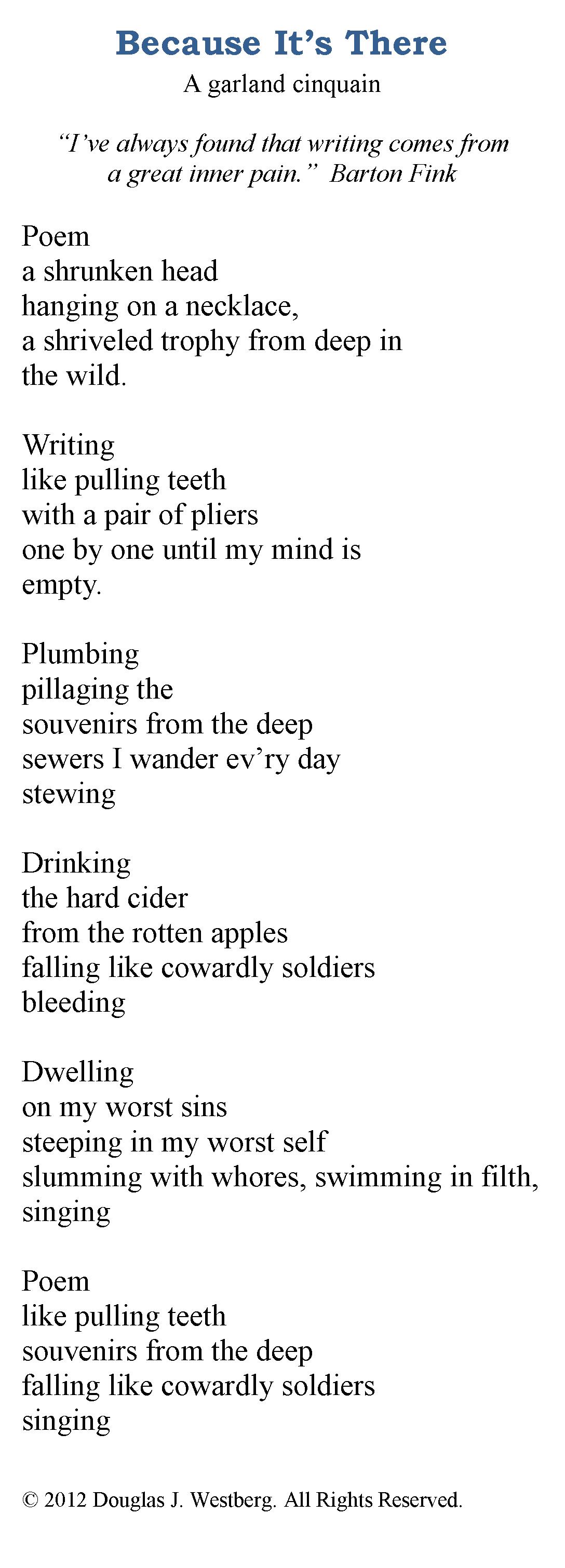 Naturally, I wrote a poem. As I’ve mentioned recently, poetry isn’t just a creative outlet; it is a way to work things out, to put words to inchoate thoughts and emotions, to shed light on the unfathomable, to make connections as an anodyne to the randomness of reality.